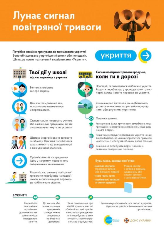 Ці чіткі інструкції допоможуть дітям не розгубитися і вчинити правильно під час повітряної тривоги. «Найголовніше: почув сирену – одразу прямуй до укриття! Швидко та без паніки», – нагадують рятувальники.